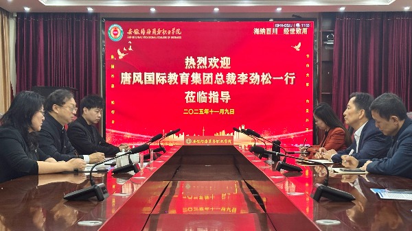 11月9日,唐风国际教育集团总裁李劲松一行到访吉隆坡科技大学中国校区——安徽绿海商务职业学院,双方围绕教育出海高质量落地、产教融合国际合作等展开深度交流。